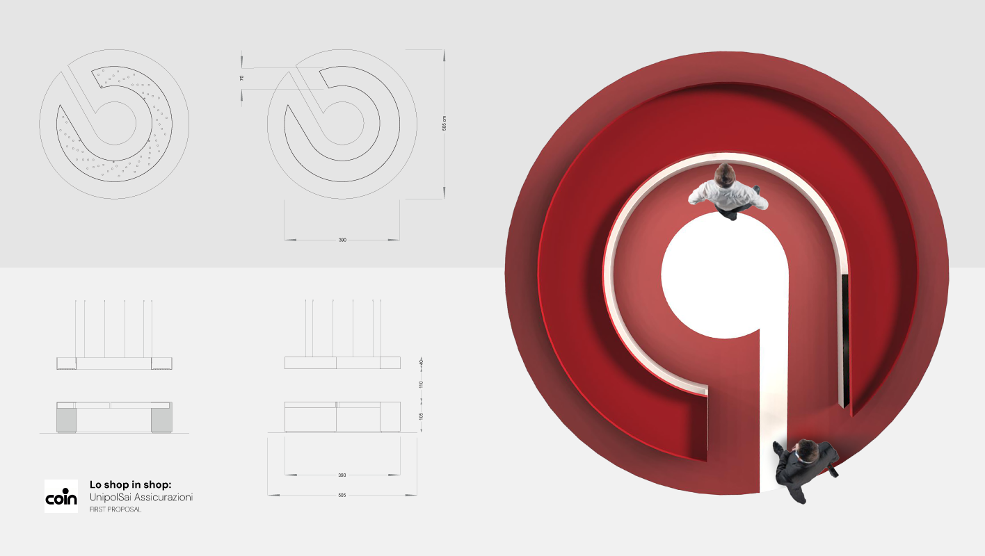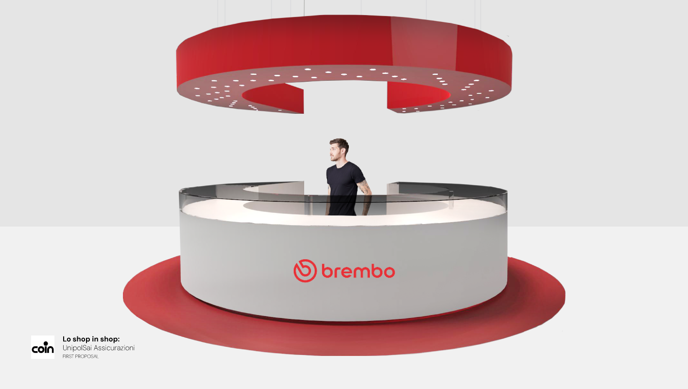 The design echoes the structure of the Brembo logo, with a single open side that forms a striking entrance at the corner of the store. Inspired by the logo’s distinctive double ring, one ring is reimagined as an integrated lighting system suspended above, while the other is transformed into a circular desk. Each element of the stand pays homage to Brembo’s bold red identity. Complementary glass components have been added to create a light and airy feel, ensuring that the dynamic perspective of the logo’s shape remains the focal point.